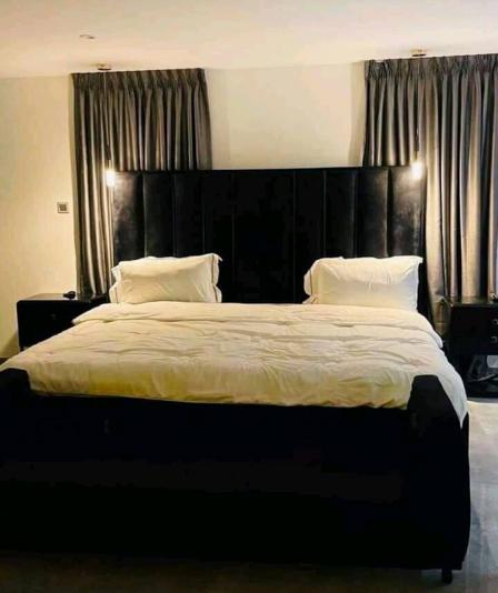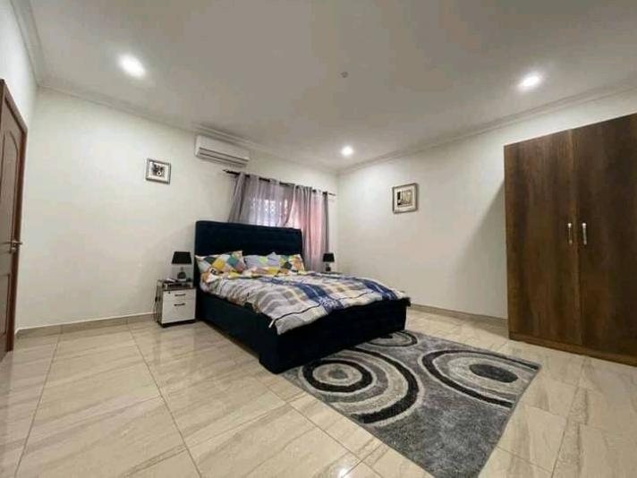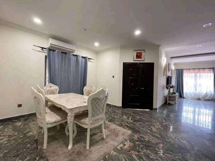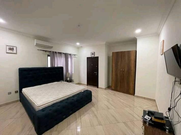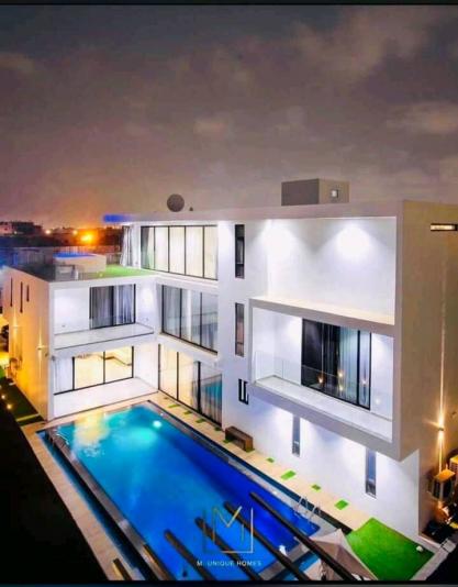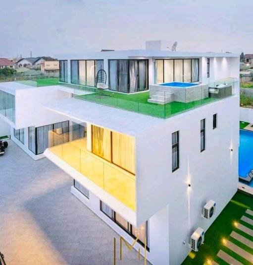 Luxurious 5 bedroom Newly built fully furnished up for sale at East Legon. SPECIFICATIONS: *Living room *Wash rooms *Dinning Area *Sitting room *Wardrobes *Guest washroom *Dish washer *Cooking stove *Microwave *Fridge fitted kitchen appliances *Cabinet *Storage room *Water supply *Security post *Reservoir *Water heater *Serene environment *Cenima hall *Laundry room *Family Area *CCTV Camera *WiFi DSTV connectivity *A/C *Balcony *Car park *Tarred compound *Gated electric system *Comes with swimming pool *Keyless entry The price is $2M USD negotiable.
