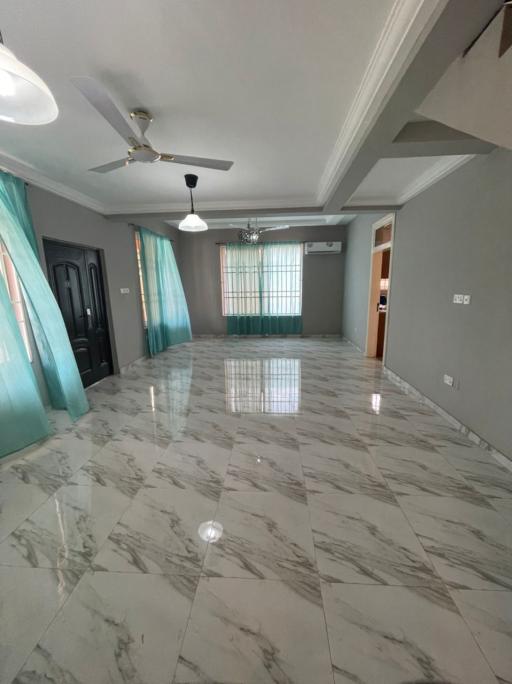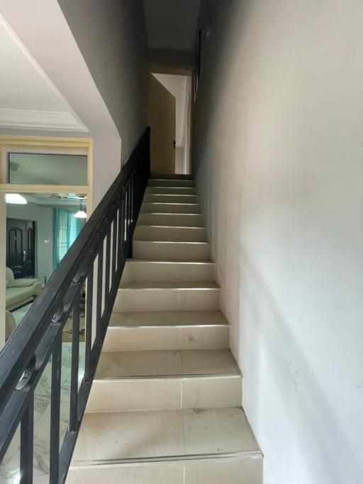5 bedroom house with one boys quarters 1 Master bedroom Spacious living and dining area POP ceiling Fitted kitchen with a storage Garage 2 poly tanks Internet connection Serene and Secured environment