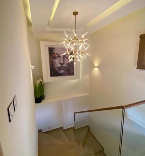 Property type-4 bedroom townhouse with boy's quarters or staff quarters No of bedrooms-5 No of washrooms -5.5 guest washroom included Location- cantonments Located inside a gated community Outdoor pool with pool speakers and rain curtain. Swimming pool bar. Smart home switches and sockets. Built-in voice assistant. Motorised curtains and blinds. Built-in in-ceiling speakers with amplifier. Fully-fitted kitchen with pantry( includes built-in washer, hob, extractor, microwave, oven and fridge). Vertical flower garden. 2 kitchens 2 living or family areas Balconies for all bedrooms Electric fence. Motorised gate. Price-$800,000 negotiable ( Note: located in a gated community of 9 units)